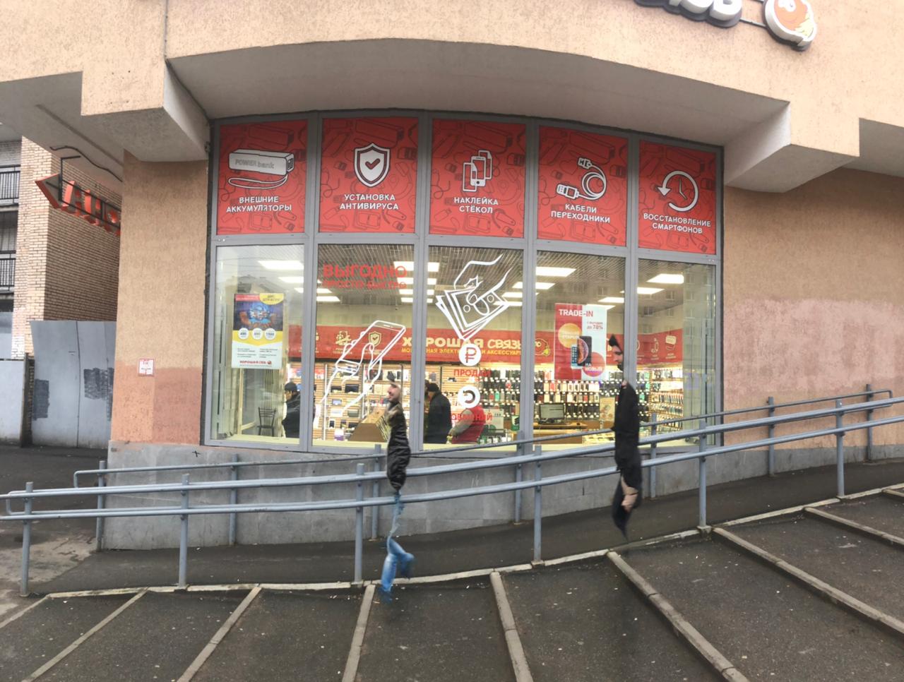 20 метров от перекрестка ул Брянцева/пр Просвещениия. Отдельный вход со стороны ул. Брянцева